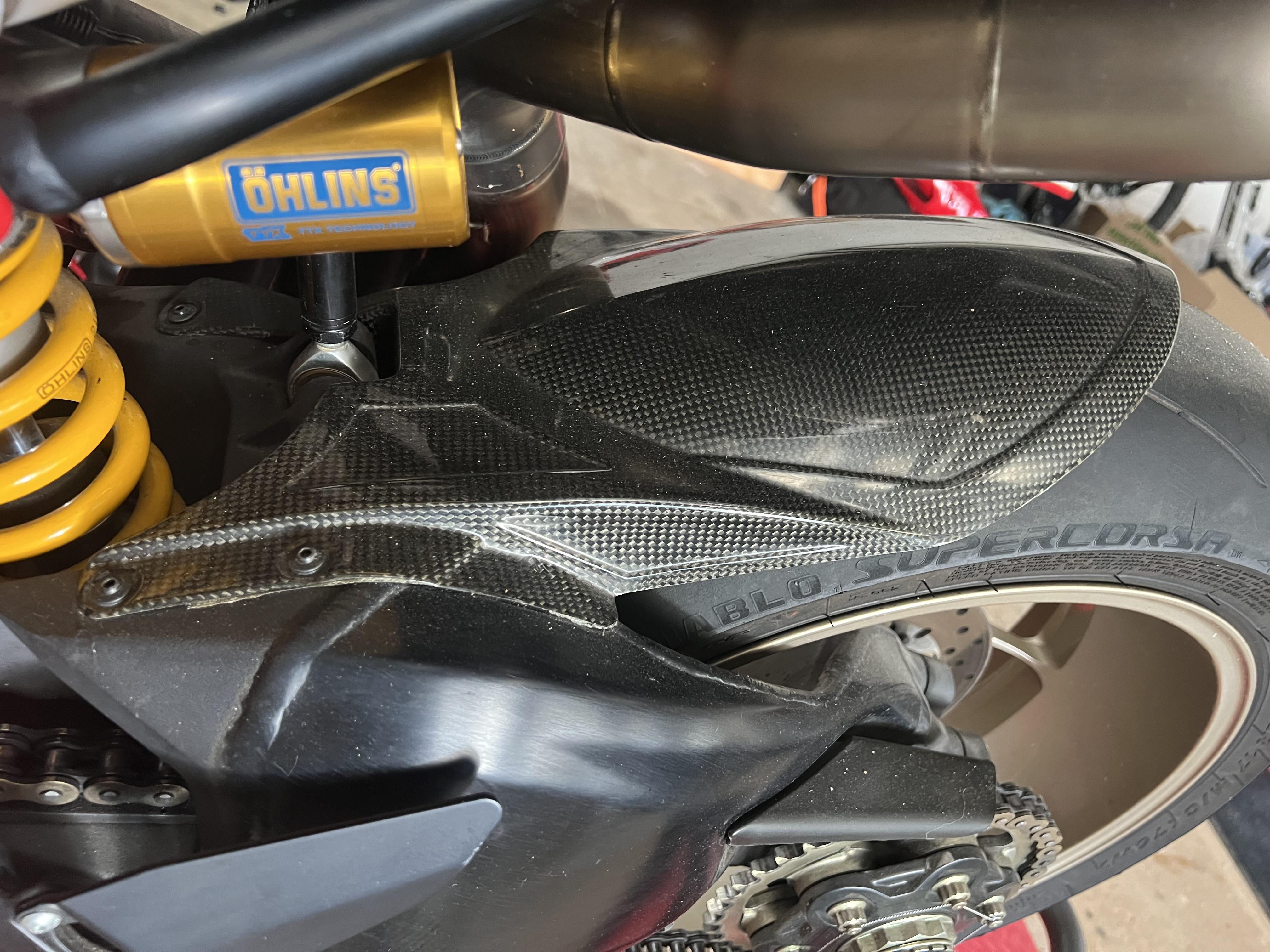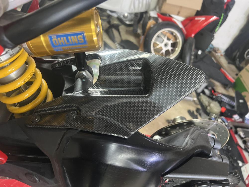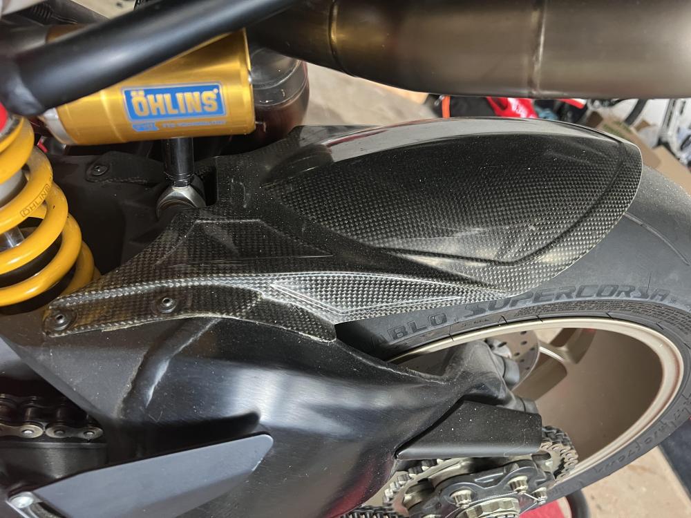 Die Originalteile, die ich erstmal ersetzte, werden alle in Luftpolsterfolie verpackt und verstaut. Alles bleibt verwahrt, so das sie in den Auslieferungszustand zurückgesetzt werden kann. Verbaut wird kein bling bling, keine Rahmendeckelkirmesbude. Ich seh zu das alles „stimmig“ bleibt. Bedeutet, alles Carbon kommt von DP, so weit es möglich ist. Der Auspuff von Motocorse, so geil er ist, kommt runter, und wird durch eine Reparto Corse Anlage ersetzt. Alles worauf die Rennleitung Wert legt, kommt mit Zulassung. Hab fast alle Teile beieinander, so das ich hoffentlich im April beim TÜV vorstellig werden kann.