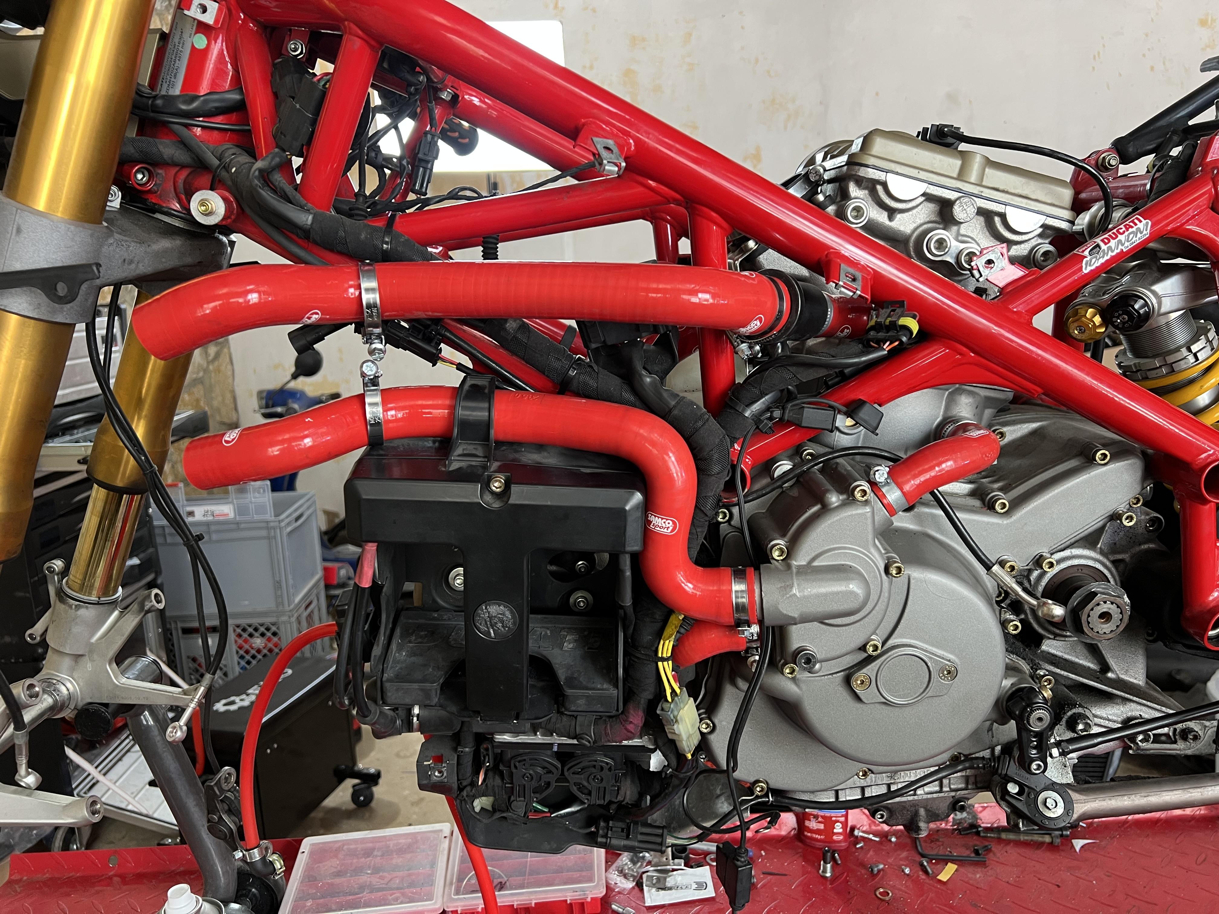 Hier nochmal die aktuelle 1098R Teile Liste. Eigentlich ist alles relevante da. die geparkten Teile sind bestellt, brauchen aber noch ein wenig. Aber auch ohne die kann ich die Kiste erstmal fertig für den TÜV machen. CNC Bremssättel ✅ Stahlbusentlüfterschrauben einfach ✅ Bremssattel spacer ✅ Bremsscheiben vorne Bremsscheibe hinten Lenkkopflager ✅ Vorderraddistanzen ✅ CNC Halter Geschwindigkeitssensor Carboncover Tacho ✅ RCS Pumpen ✅ Motocorsa Pissbecher ✅ CNC Hallter Lenkungsdämpfer ✅ Corse Kurzhuggasgriff Tankdeckel ✅ Lifepo Batterie ✅ Samco Kühlerschläuche ✅ Oberon Kupplungsnehmerzylinder ✅ CNC Fussrastenanlage ✅ Desmoworld Carbon Schaltstange ✅ CNC Lineare Umlekung 🅿️ CNC Schubstange ✅ DP Carbonfender hinten ✅ Corse Termi Auspuffanlage ✅ Titan Termi Endtöpfe 520er 14er Ritzel ✅ 520er 38er Stealth Kettenrad ✅ 520er Kette ✅ AEM Ghost Flansh DP Carbon Ritzelabdeckung ✅ Carbon Heckunterverkleidung ✅ Carbon Kühlerdreieck ✅ Motogadget Blinker hinten DP Carbon Kupplungsdeckel geschlossen Luftfilter Race ✅ Carbon Drosselklappenhater ✅ Carbon Sigl Ramair 🅿️ Reifen ✅ Ölfilter ✅ Öl ✅ CNC Schaltwellenhebel ✅ Ölsumpfdeckel 🅿️ Ölablaßschraube 🅿️ -