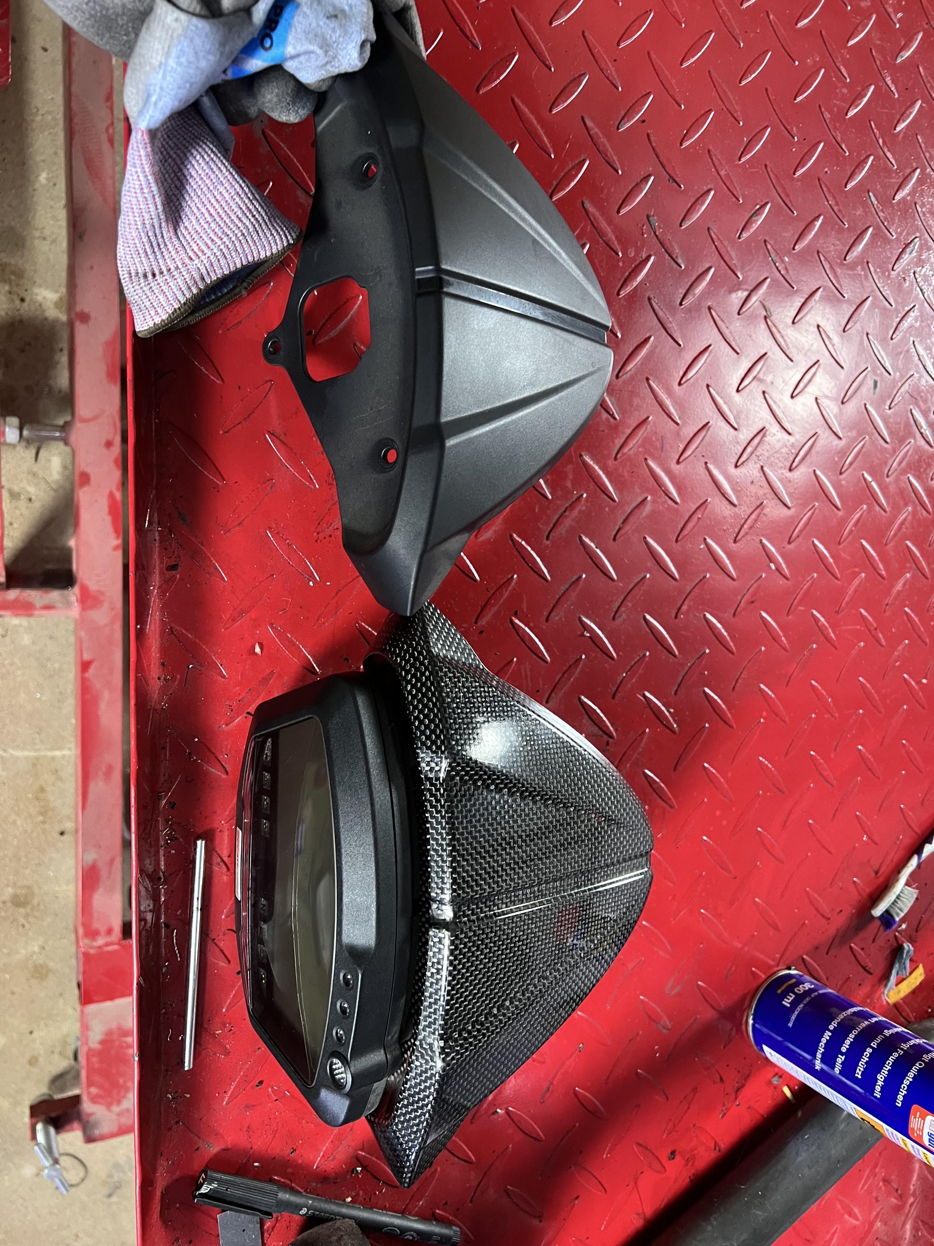 Einmal Cockpitabdeckung aus Plastik getaucht gegen DP Carbon, und dann noch diesen hässlichen Fender, dessen Carbonoptik auch nicht passte, gegen ein Original DP Teil getauscht. -