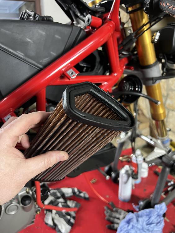 Alter BMC Luftfilter wurde gegen eine neuen Sprint Filter getauscht. Ich hatte ja auch einen Pipercross Filter da, aber der war von der Verarbeitung so grottig, das ich den postwendend wieder zurück geschickt habe. Und weil ich eh noch welche rumliegen hatte, waren die Zündkerzen auch gleich dran. -