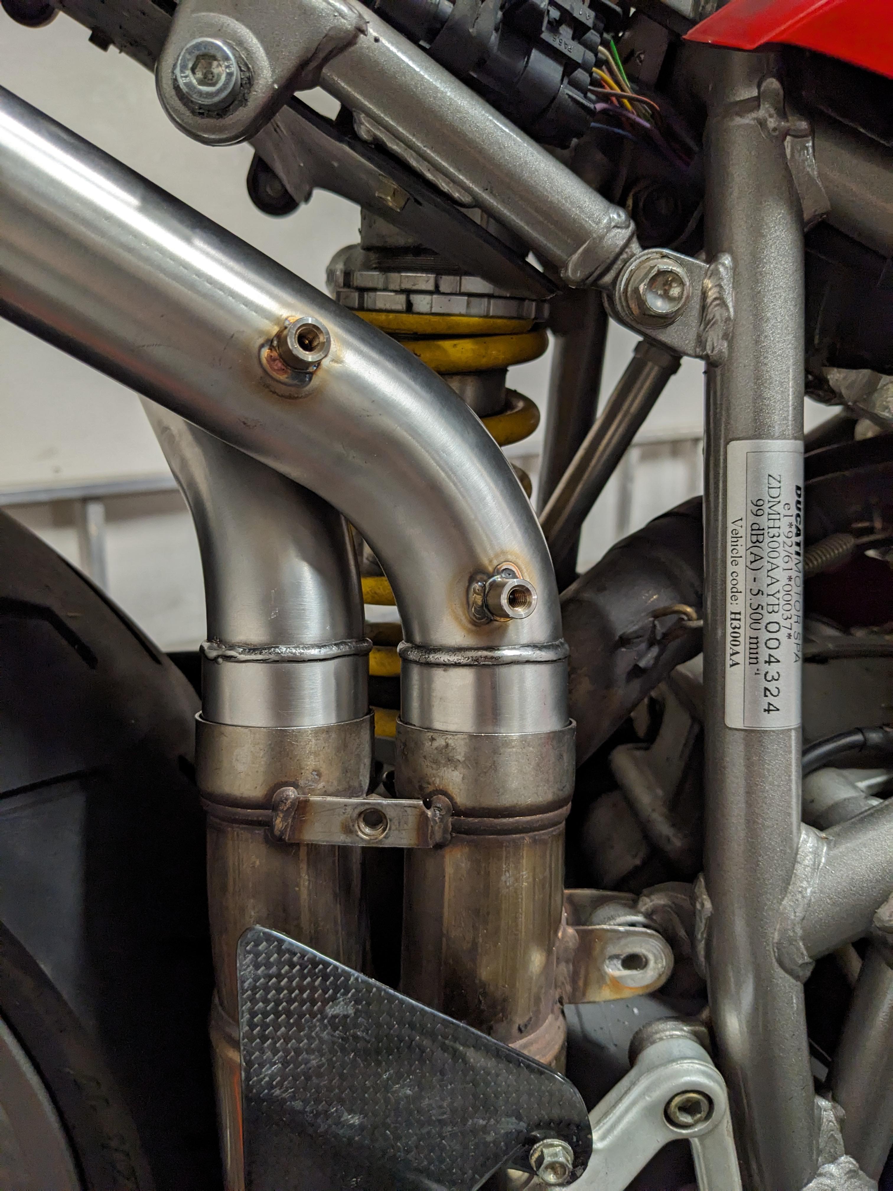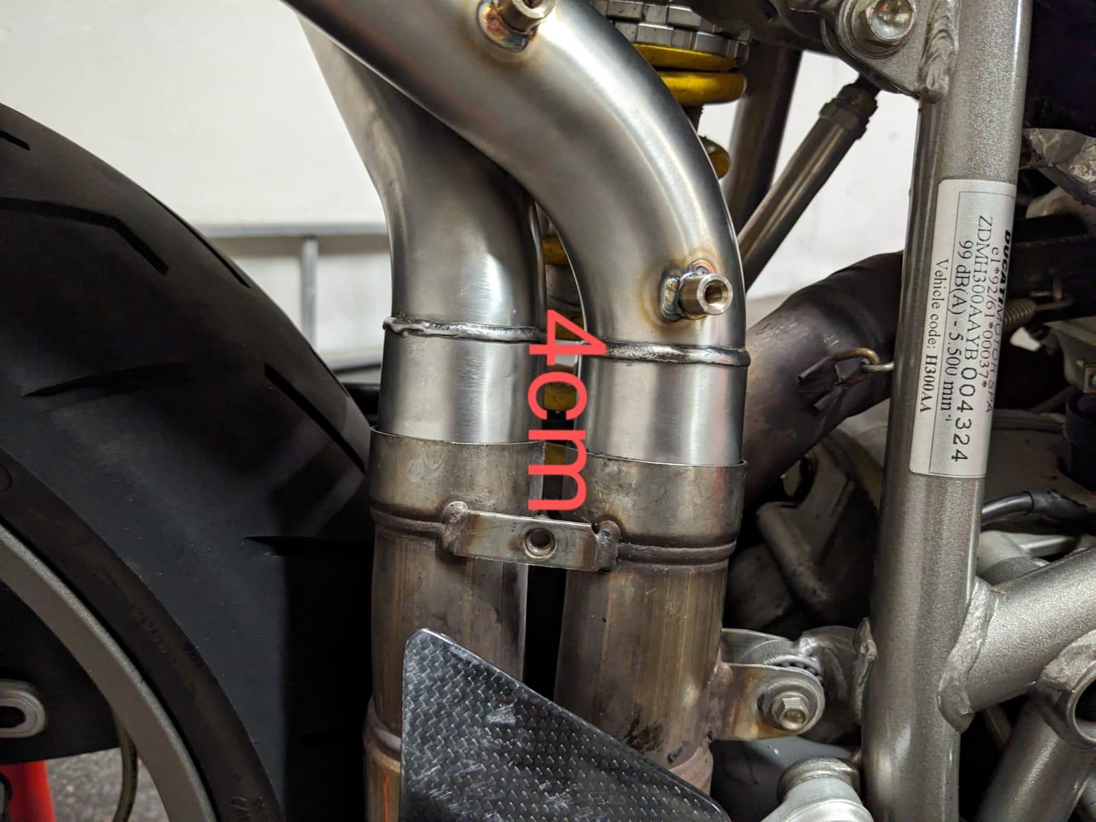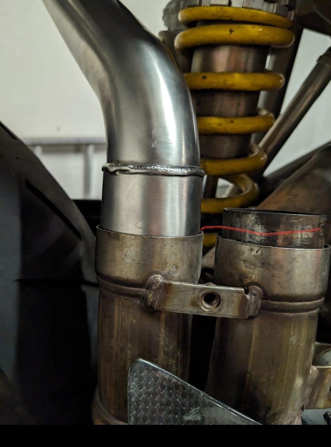jhf Geschrieben 22. Mai 2024 Geschrieben 22. Mai 2024 (bearbeitet) Am 21.5.2024 um 16:15 schrieb ktre: Das linke Rohr sollte auch deutlich tiefer im Sammler stecken. Rechts geht ja gar nicht. Wie ist denn der Innen- und der Aussendurchmesser deiner Rohre? Bei meiner 748 musste ich etwas tricksen, da ich nicht mehr den Originalsammler verbaut habe, sondern einen der von 45mm auf 50mm geht - gehört zu den Arrow Slipons, die mal verbaut waren - jetzt mit den Original-Endtöpfen passt es auch nicht mehr zu 100%, aber bei weitem besser als bei dir. Bearbeitet 22. Mai 2024 von jhf ++