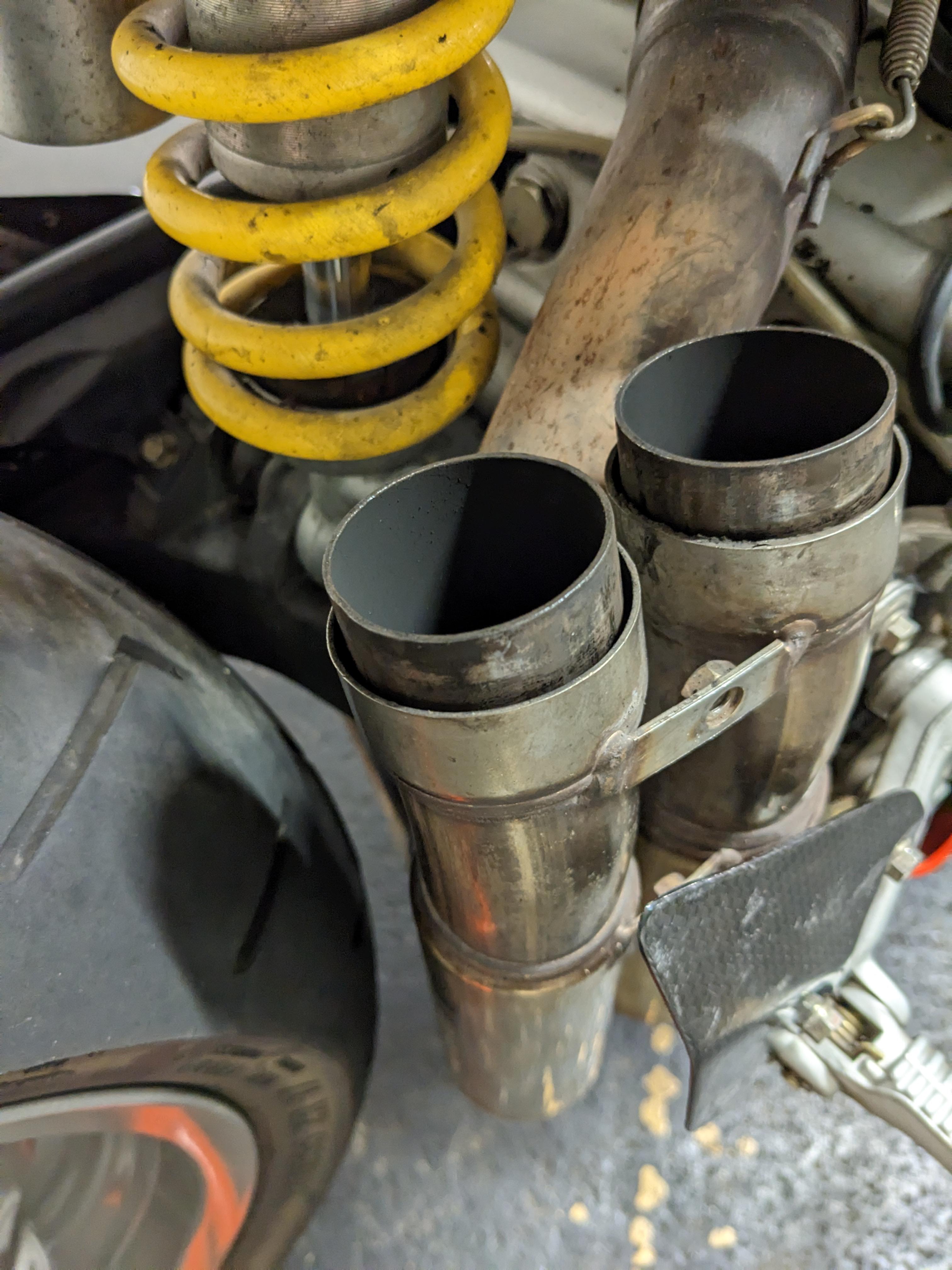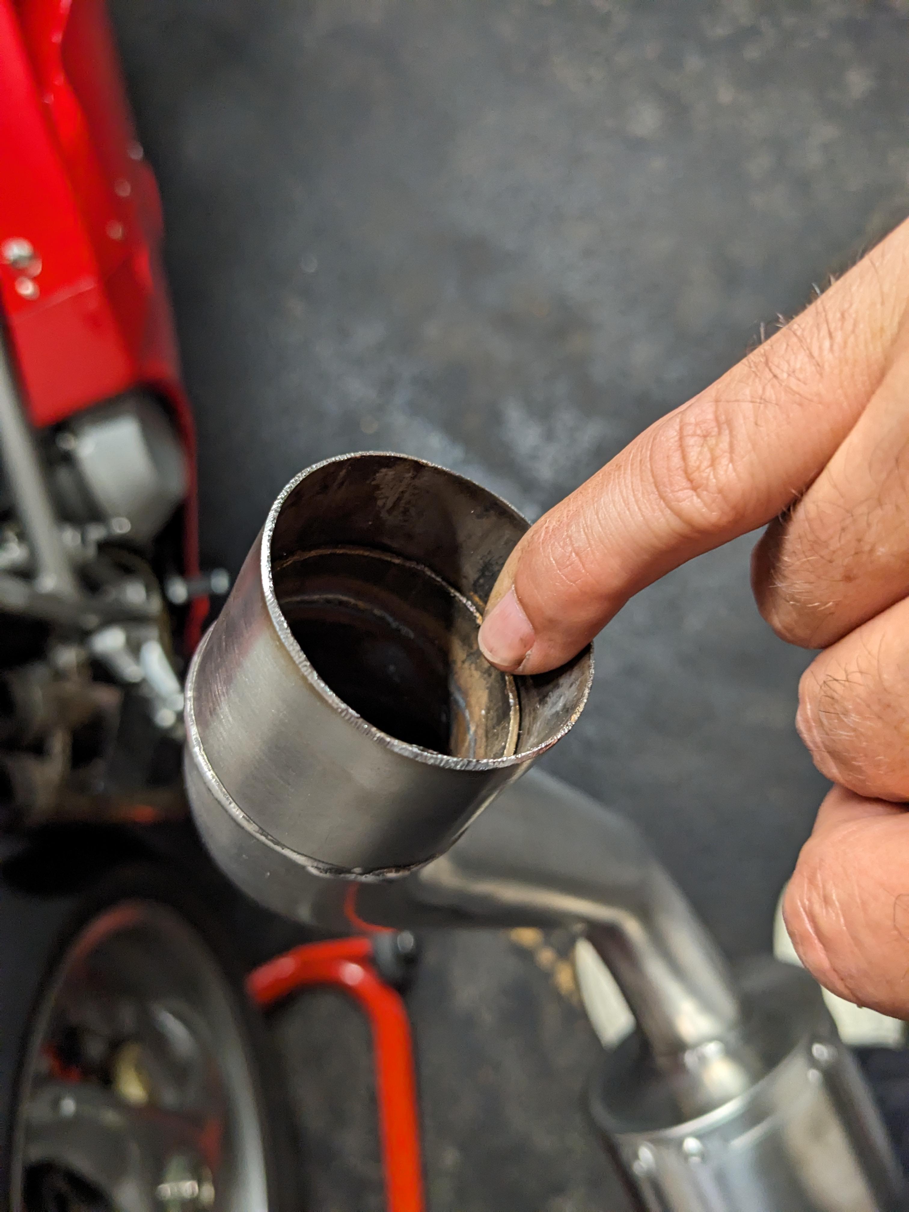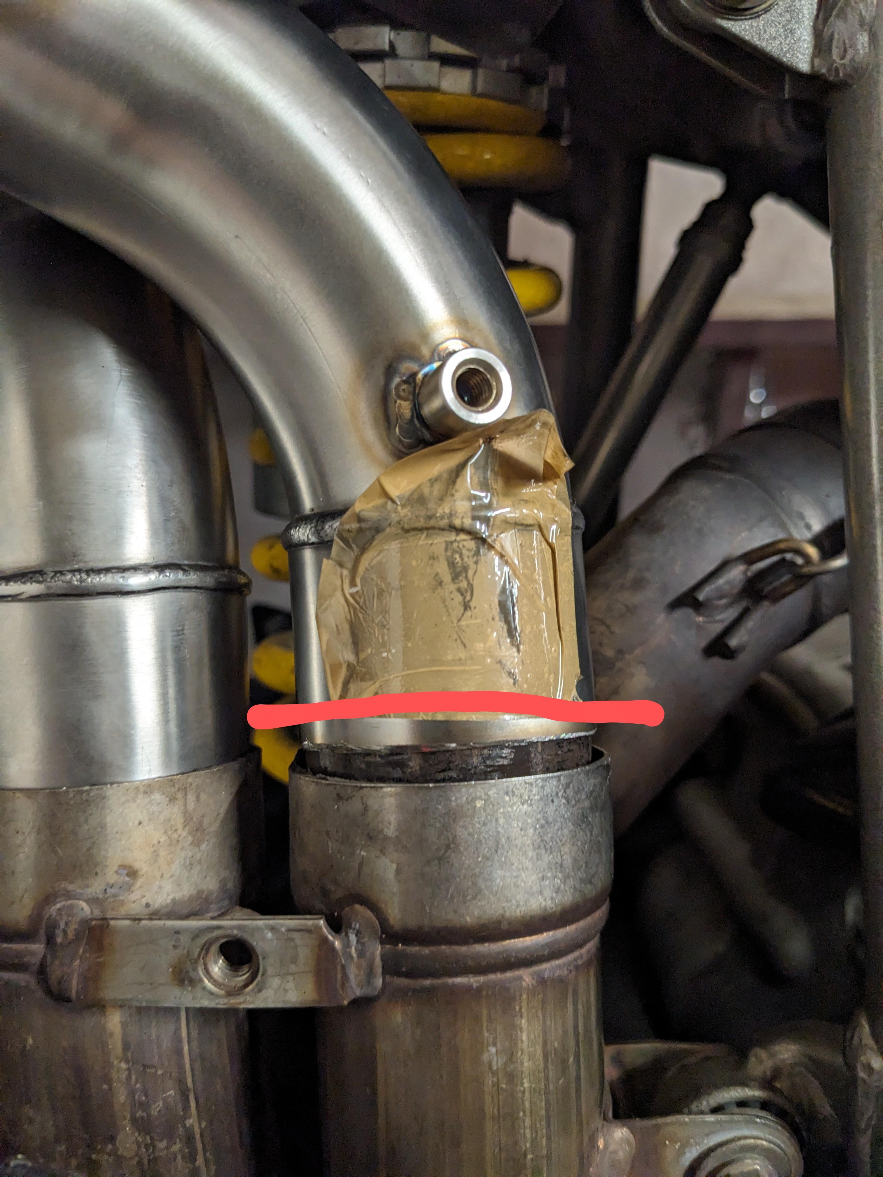 jhf Geschrieben 22. Mai 2024 Geschrieben 22. Mai 2024 (bearbeitet) Am 21.5.2024 um 16:15 schrieb ktre: Das linke Rohr sollte auch deutlich tiefer im Sammler stecken. Rechts geht ja gar nicht. Wie ist denn der Innen- und der Aussendurchmesser deiner Rohre? Bei meiner 748 musste ich etwas tricksen, da ich nicht mehr den Originalsammler verbaut habe, sondern einen der von 45mm auf 50mm geht - gehört zu den Arrow Slipons, die mal verbaut waren - jetzt mit den Original-Endtöpfen passt es auch nicht mehr zu 100%, aber bei weitem besser als bei dir. Bearbeitet 22. Mai 2024 von jhf ++