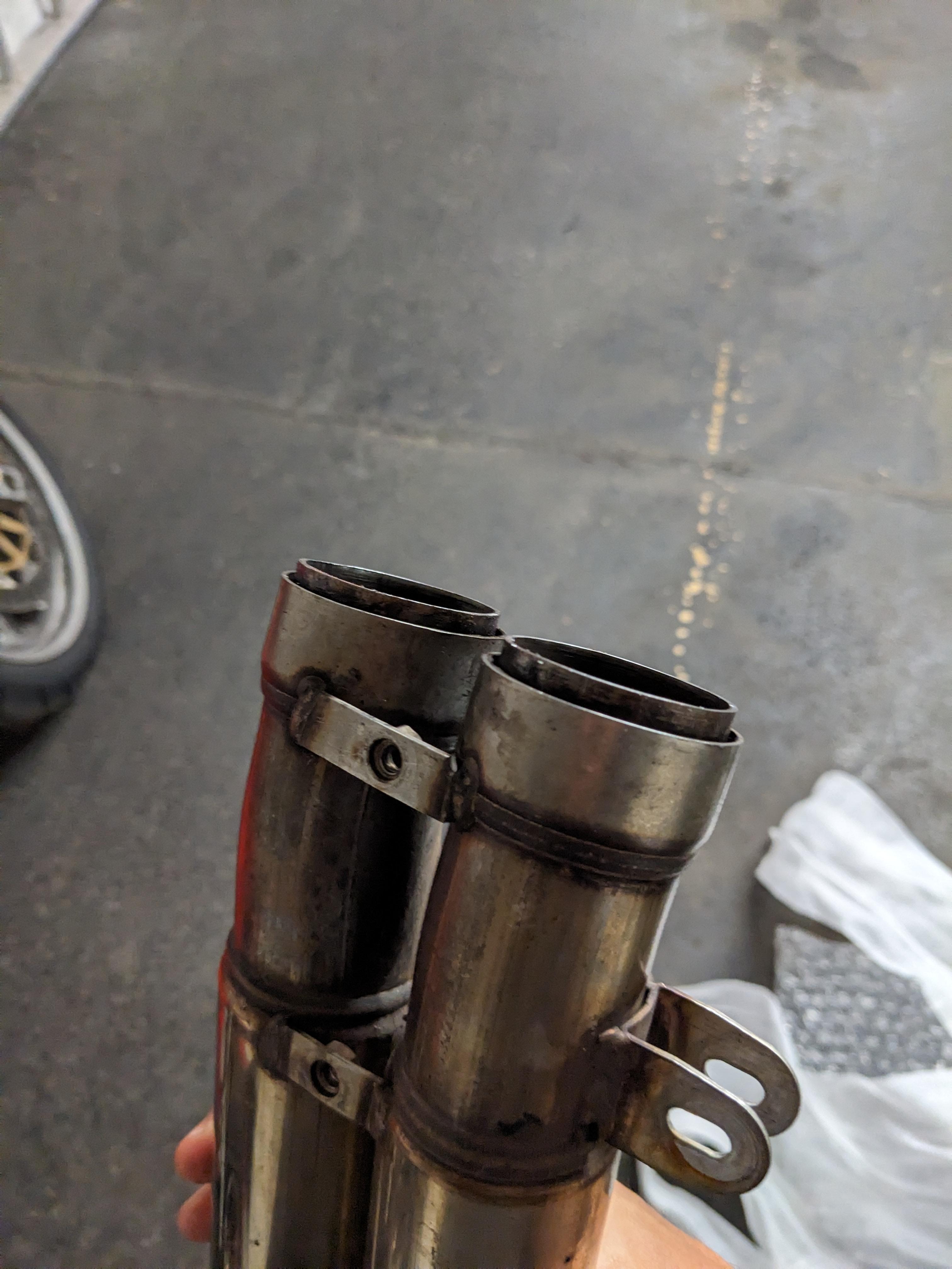ktre Geschrieben 24. Mai 2024 Geschrieben 24. Mai 2024 (bearbeitet) Ich präsentiere, die Lösung. Im Endeffekt am Hosenrohr ca. 0.6/0.7mm weggenommen. Somit stecken die Dinger ca. 1.3cm nun im Hosenrohr. Lies sich alles einwandfrei wieder montieren und war im Endeffekt ne Sache von ner Stunde, von welcher ein Großteil für die linke Schelle (!) draufging. Den Aufkleber rechts muss ich noch Mal tauschen Der linke Slip On ist noch immer zu nah am Heck, sobald ich mich draufhocke, stößt es an. Wie ging das mit dem Zapfen? EDIT: @testastretta_998 du hattest das geschrieben mit dem Zapfen? 🙂 Ich freue mich auf eine Nacht ohne Gedanken um eine Lösung machen. Jetzt kann ich wieder über das Wetter sudern. Bearbeitet 24. Mai 2024 von ktre 2 ++