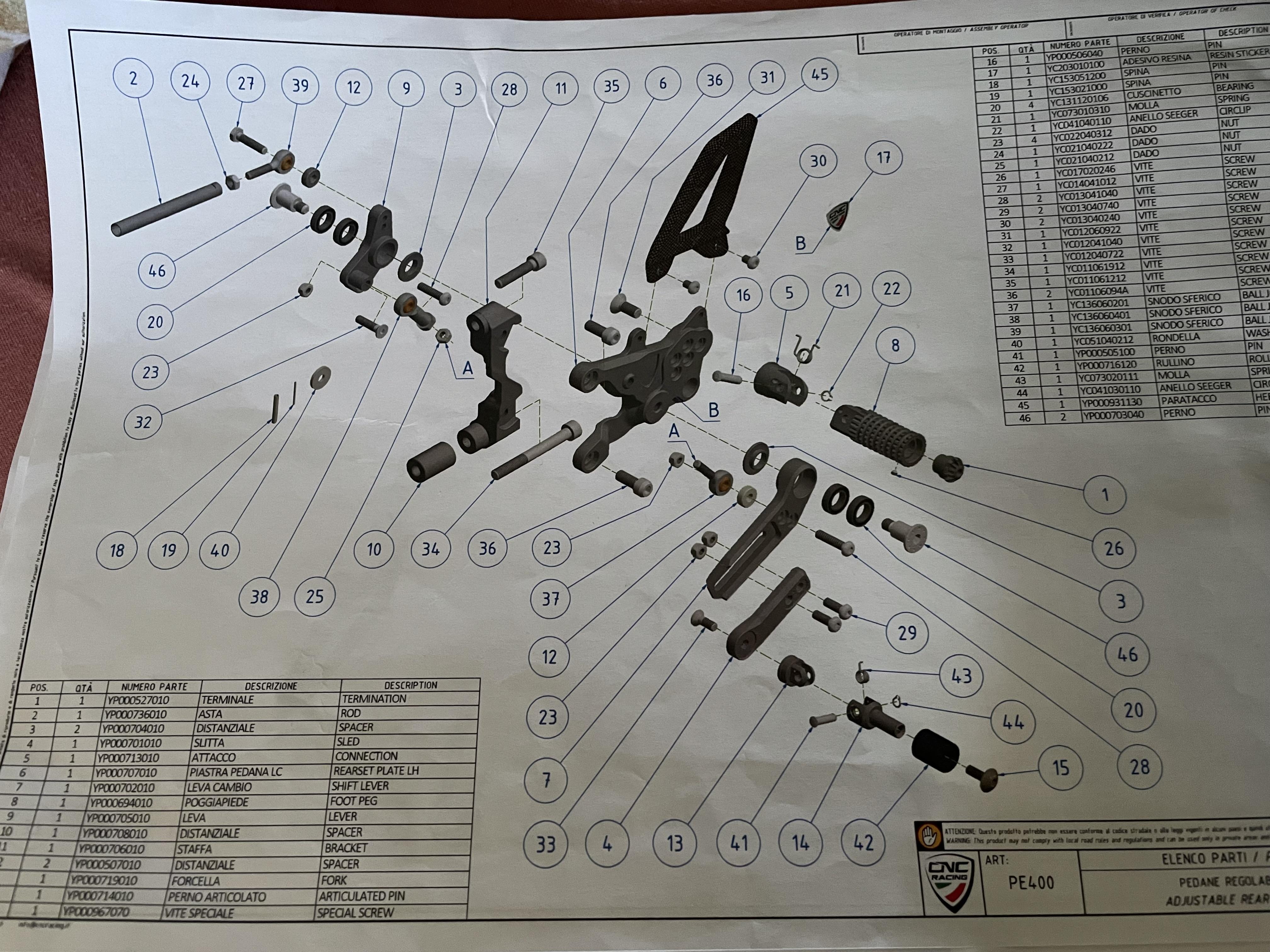 newc0mer Geschrieben 24. April 2024 Geschrieben 24. April 2024 (bearbeitet) Moin, ich bin seit kurzem stolzer Besitzer einer 1299 S. An der ist eine CNC Racing Rastanlage eingetragen, die würde ich gerne verstellen. Hier das Anlagenschema: https://www.cncracing.com/attachments/591/2/ENG/PE405_QR.pdf Also, um den Schalthebel in der Höhe zu verstellen, muss ich doch Pos. 45 (Seite 3) lösen und anpassen bzw. die zweite Bohrung der Pos. 38 nutzen. Das ist mir soweit klar. ich habe aber auch Probleme mit der Schaltkraft. Im Stehen war es mir quasi unmöglich das Motorrad in N zu schalten, egal wie viel Gefühl ich nutze. Schalten nach oben und unten erfordert ungewohnt sehr viel Kraft, kann ich dies irgendwie beeinflussen? Mit Pos. 46 und 48? Bräuchte einen Crash-Kurs. Wäre dankbar für jeden Tipp. LG Bearbeitet 24. April 2024 von newc0mer ++