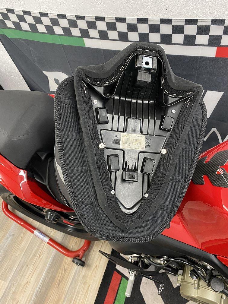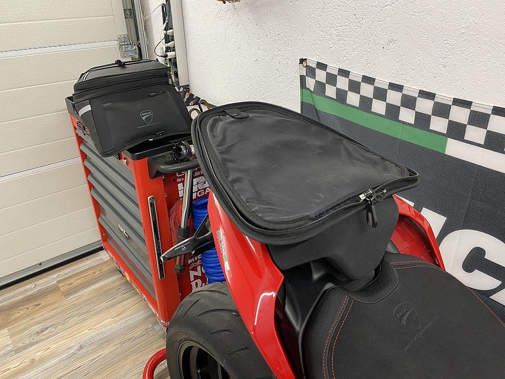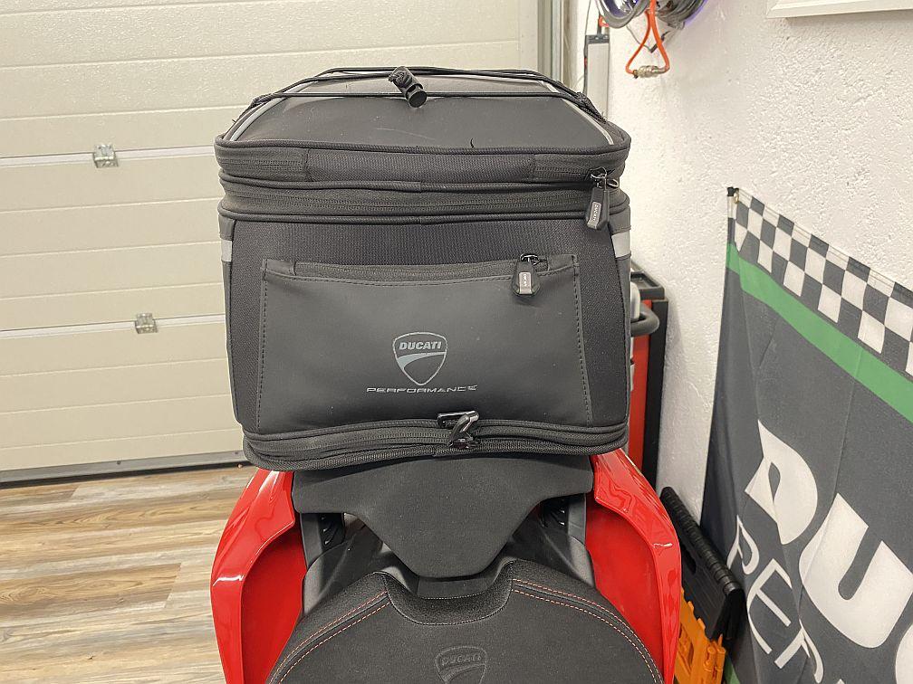 Benno Geschrieben 3. November Geschrieben 3. November Servus zusammen, weil meine SF ausschließlich auf Mehrtagestouren bewegt wird, habe ich mir die Gepäcklösung von der Panigale 2015 - 2017 passend gemacht, die ich zuvor schon 5 Jahre und über 40.000km auf der Monster hatte. Ich komme damit eine Woche zurecht, weil ich kaum Gepäck mitnehme, sondern lieber abends im Hotel meine Wäsche kurz wasche. Aber es hat alle drin Platz: Schuhe, Regenkombi, Reifenflick- zeug, Werkzeugset, Verbandstasche, Socken, Unterhosen, Shirts, eine kurze Hose, meine Badehose und ein kleiner Kulturbeutel. Klar muss ich das Zeug da ordent- lich reinstopfen, aber es geht. Wenig er ist mehr. Das Coole: mit dem Schlüssel kann ich ganz easy das Sitzpolster mit der Tasche drauf abnehmen, wenn ich wieder daheim bin. Und abends bei Ankunft am Hotel, löse ich die Tasche mit dem Reißverschluss vom Sitzpolster. Die Tasche mit dem Pani-Sitzpolsteradapter: Die Plattform, die anstelle des Sitzpolsters eingerastet wird. Hier von oben und ohne die Taschenhalterung: Hier die Taschenhalterung, die mit dem Sitzpolster der SFV4S von unten verschraubt wird. Habe mir ein zweites Sitzpolster gekauft, den Bezug geöffnet und den Schaumstoff entsprechend nach der Kontur der Befestigung der Tasche ausgeschnitten und aus dem. Links der entfernte Schaum aus dem zweiten Polster, rechts das serienmäßige Polster meiner Fighter. Den Bezug des zweiten Polsters habe ich nach dem Entfernen des Schaums einfach straffer gespannt und wieder befestigt. Dann die Taschenbefestigung mit entsprechend langen Schrauben durch das Sitzpolster verschraubt, den Reißverschluss eingehalt und die Tasche befestigt. Hebt bombenfest. 💪 Hier noch Bilder, als die Tasche auf der Monster montiert war. Man kann sie auch um eine Stufe im Volumen erweitern. Ich mache den Reißverschluss der Erweiterung beim Packen auf und wenn alles drin ist, ziehe ich ihn mit Druck auf den Deckel der Tasche zu und komprimiere den Inhalt dadurch. Und auch eine Regenhaube gehört dazu. Die passt dann auch perfekt, wenn die Erweiterung nicht offen ist. Am "hohen Turm" spannt sie etwas arg, ist mit Kraft aber auch passend zu ziehen, dass alles dicht ist. 5 ++