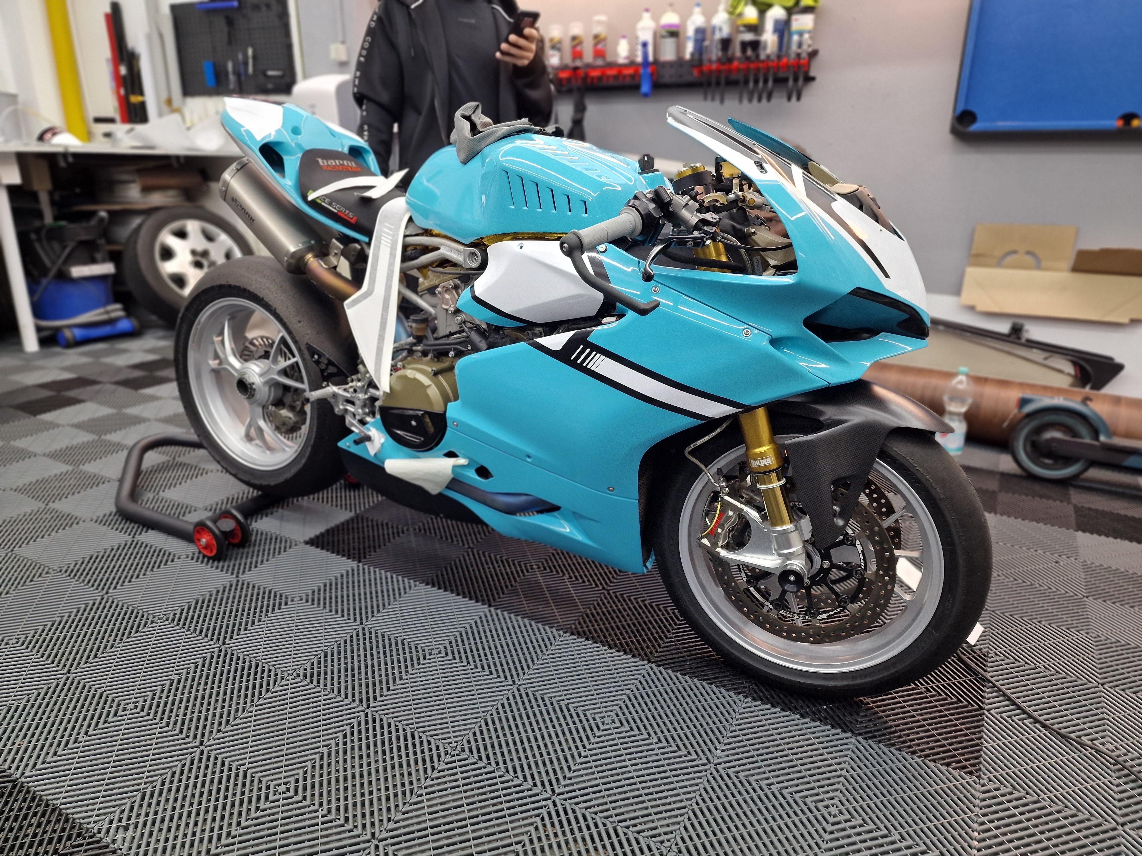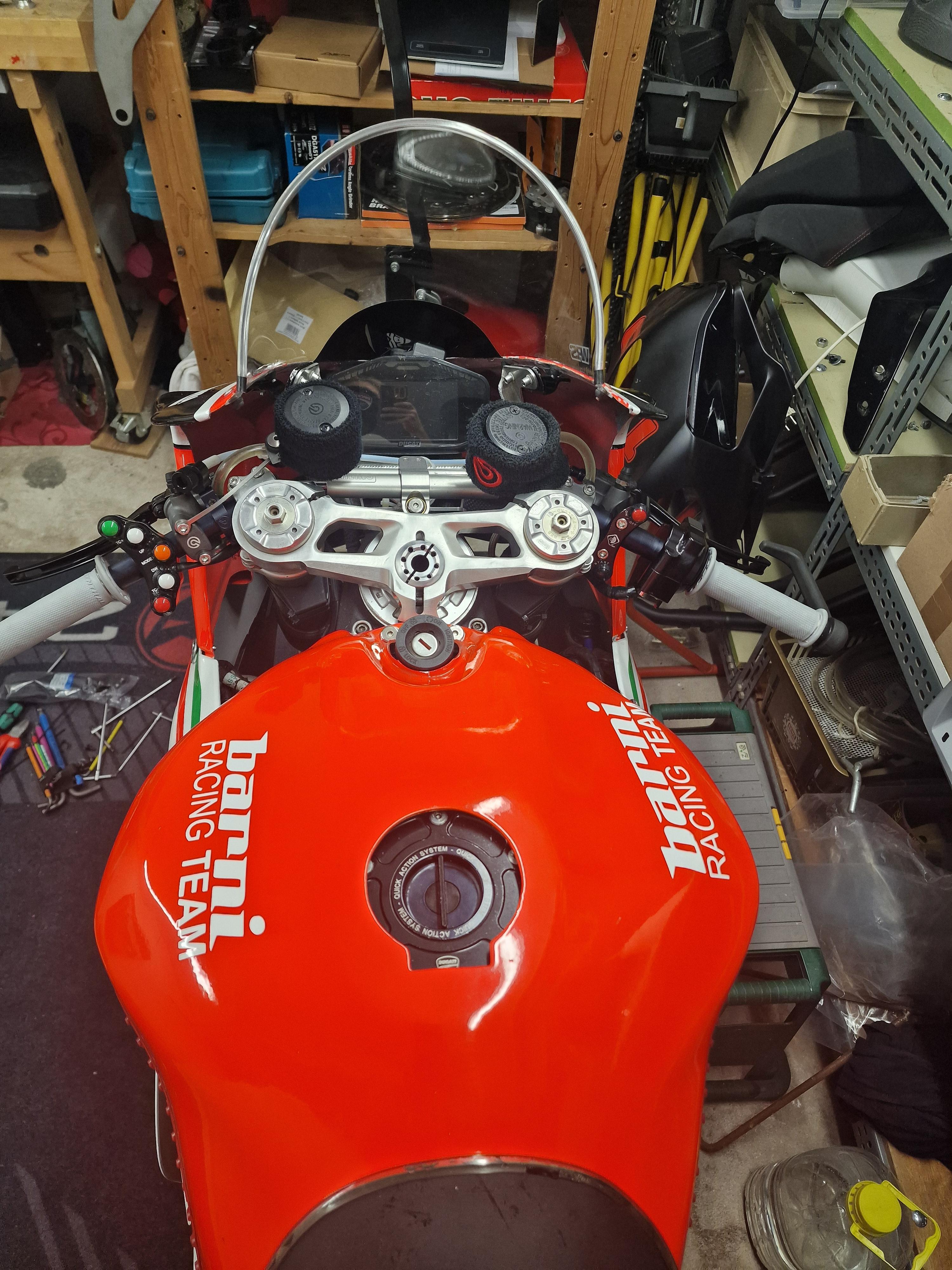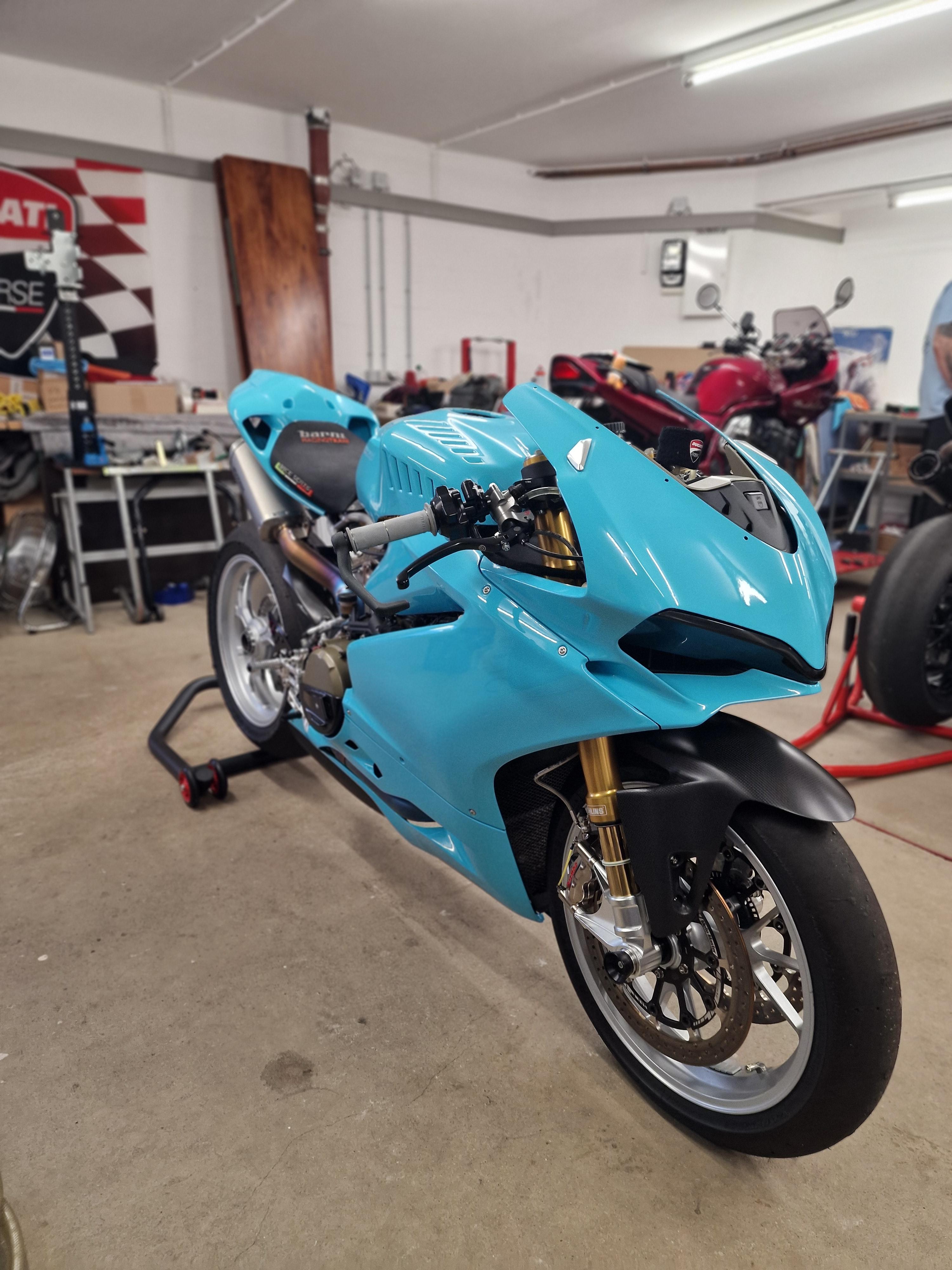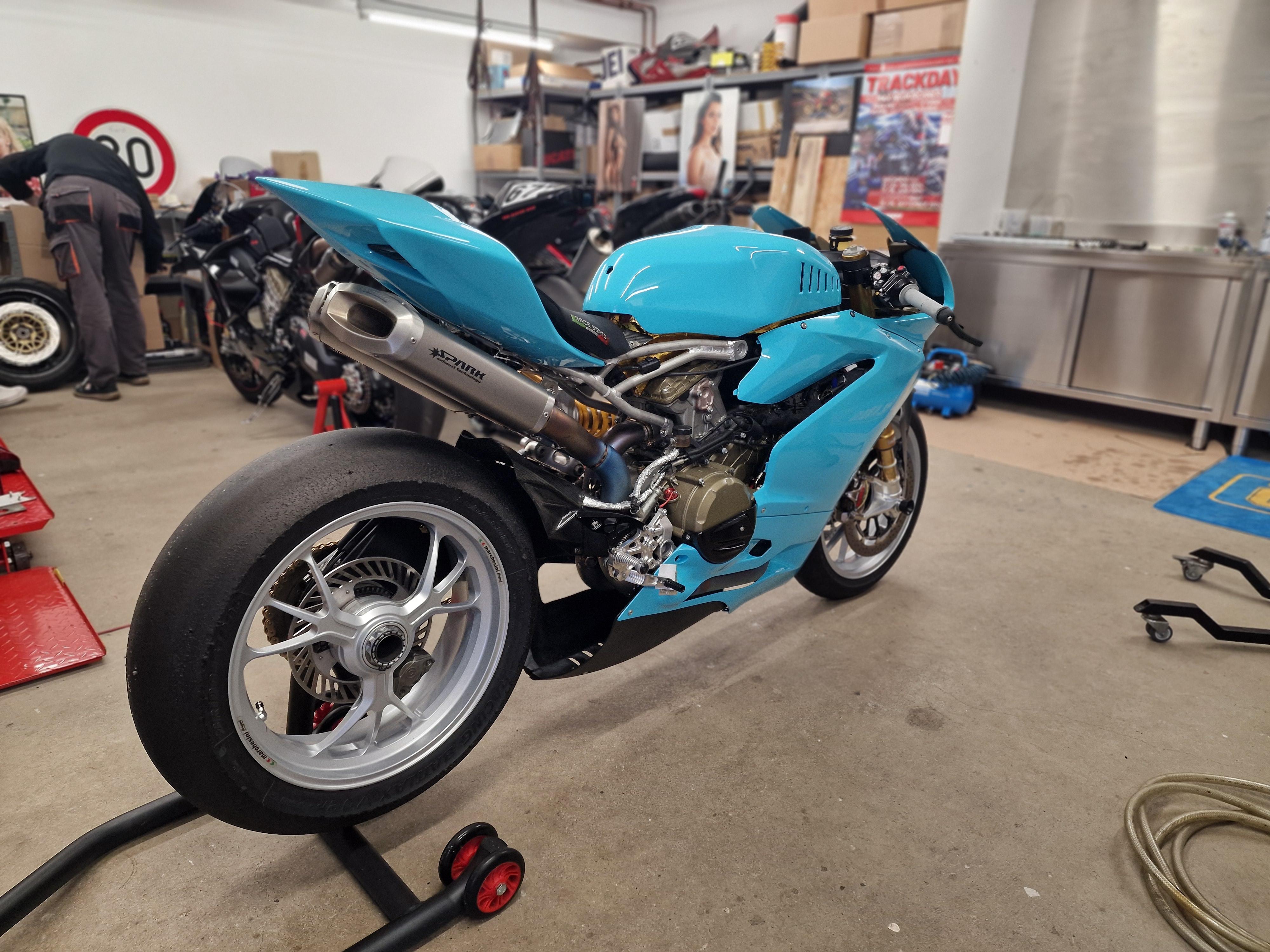 Felix87 Geschrieben 16. Dezember 2024 Geschrieben 16. Dezember 2024 Hallo zusammen, seit ca. 9 Monaten verwirkliche ich mir einen kleinen Traum und baue eine Panigale 1299 für die Rennstrecke auf bzw. nach meine Vorstellungen um. Der ursprüngliche Plan, die gekaufte Maschine einmal durchzuchecken, zu putzen und dann einfach zu fahren, war natürlich eine absehbare kolossale Lüge mir selbst gegenüber um sich die anstehenden Kosten schönzureden. Mittlerweile ist fast das 1,5 fache des Anschaffungspreises in das Projekt geflossen. 🤑 Das das Geld in Bezug auf Rundenzeiten besser in mehr Trainings und Fahrzeit investiert gewesen wäre weiß ich selbst. Mir macht es jedoch Spaß nach Teilen Ausschau zu halten, kaufen und zu verkaufen, umzubauen, zu schrauben - deshalb alles gut! ✔️ Neuer Plan ist die Maschine diesen Winter einigermaßen "abzuschließen" und dann ein paar Jahre damit Spaß zu haben. 1 ++