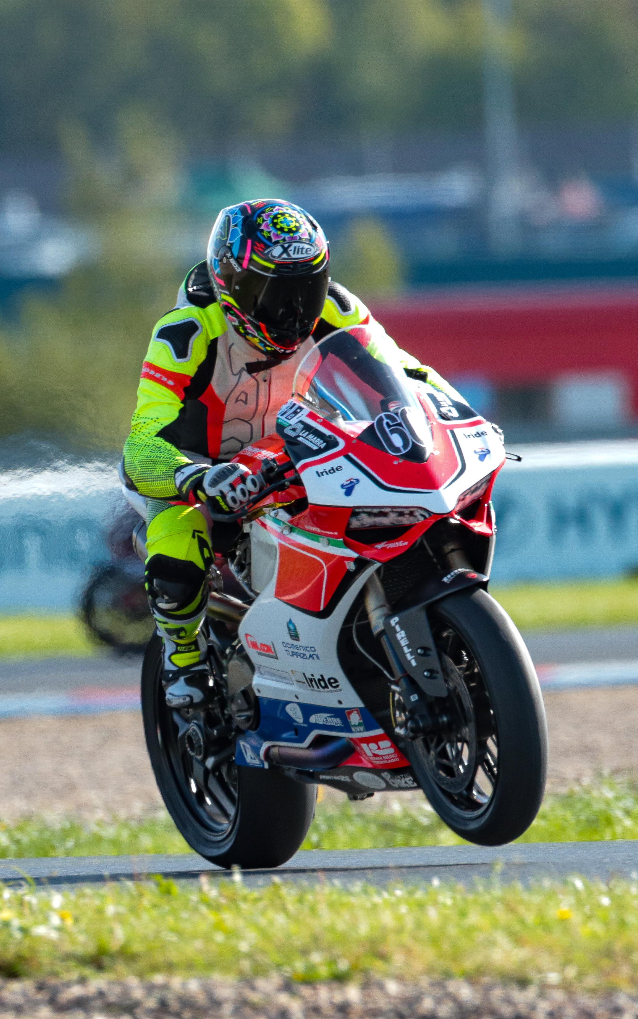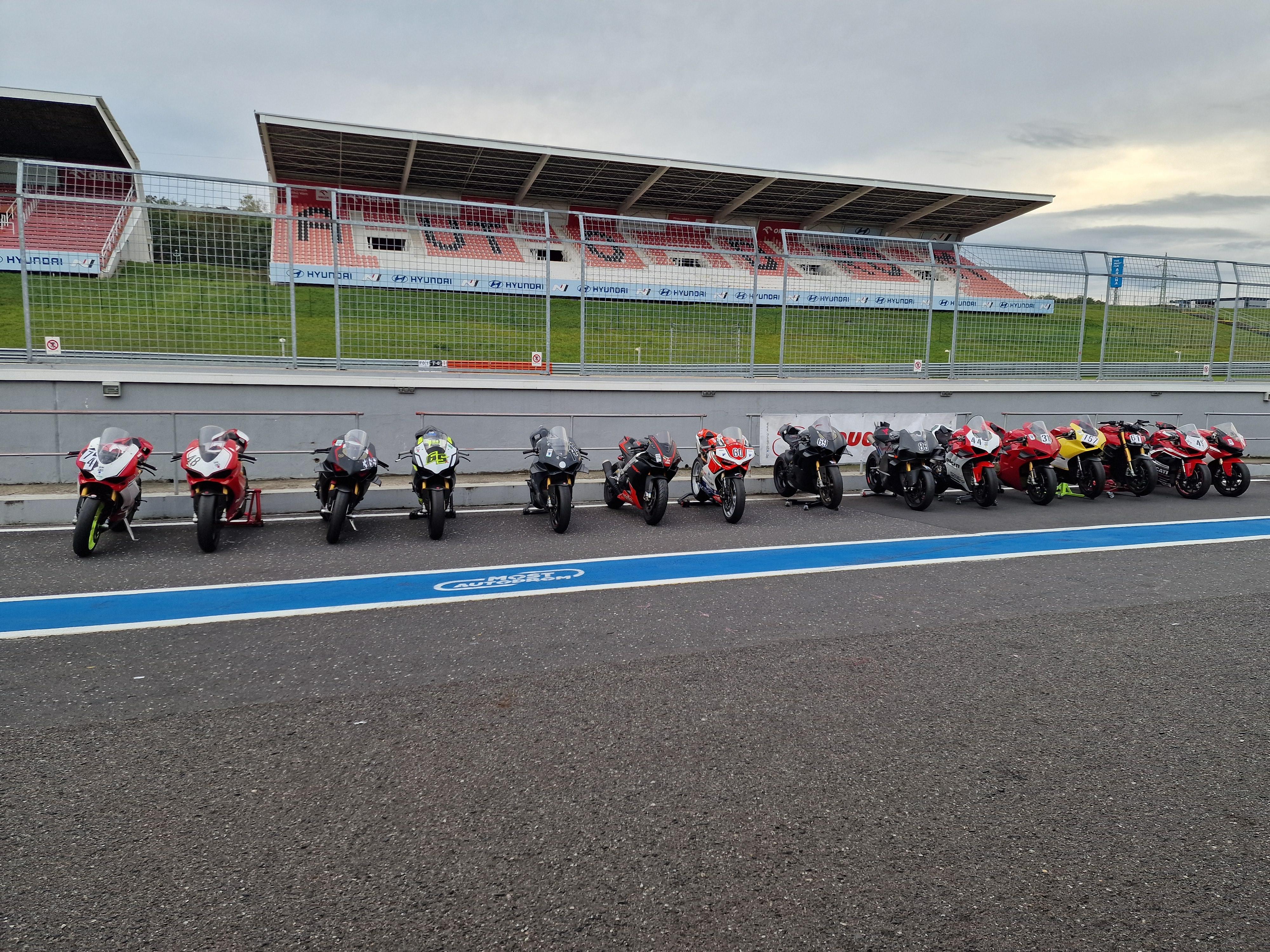 Felix87 Geschrieben 24. April 2025 Autor Geschrieben 24. April 2025 (bearbeitet) Im September 24' war es dann soweit - die 1299 war das erste Mal wieder komplett zusammengebaut, hatte frische Flüssigkeiten und ein erstes Basis-Setup von Andy bekommen. Nach vielen Jahren Rennstreckenabstinenz (bis auf ein Forumstreffen mit Straßenmopped zu Corona Zeiten) ging es das erste Mal wieder mit einem richtigen Rennstreckenmopped nach Most zum letztjährigen Forumstreffen. Fazit: Wie immer eine tolle Veranstaltung mit anderen Gestörten. Leider fiel der 2. Tag wettertechnisch für mich ins Wasser, aber das ist eben manchmal so. Die 1299 hatte soweit gut funktioniert, Leistung ohne Ende, Fahrer am Limit -alles gut 🙂 In der schnellen Links hinter dem Fahrerlager hat das Heck beim Beschleunigen extrem gepumpt, da musste ich von den 3. direkt in den 5. schalten um sauber durchzukommen. Wie schon mit Andy vermutet, war die originale 90er Feder am Heck deutlich zu weich - hier gab es Änderungsbedarf. Mit der Ducati Corse Fußrastenanlage hatte ich auch so meine Schwierigkeiten, die Rasten bzw. den Schalthebel auf die richtige Höhe einzustellen und gefühlt hatte die ganze Umlenkung der Schaltanlenkung relativ viel Spiel - auch hier Handlungsbedarf. Am Nachmittag des ersten Tages gab es eine brenzlige Situation, letzte Kurve Richtung Start Ziel hatte ich zum Überholen angesetzt, der Kollege vor mir sich aber verschalten und gefühlt stehen geblieben. In der Sekunde gab es nur die Entscheidung Ihm aufs Hinterrad zu fahren oder aufzumachen und weit zu gehen. Zum Glück habe ich mich für zweiteres entschieden und bin dafür leider links neben Start/Ziel am Kurvenausgang in den Kies. Konnte noch gut abbremsen, aber dann bei Schrittgeschwindigkeit im Kies umgekippt. Bis auf eine gebrochene Scheibe und paar Kratzer zum Glück nichts passiert. Einen Turn später ging es wieder raus. Bearbeitet 24. April 2025 von Felix87 4 ++