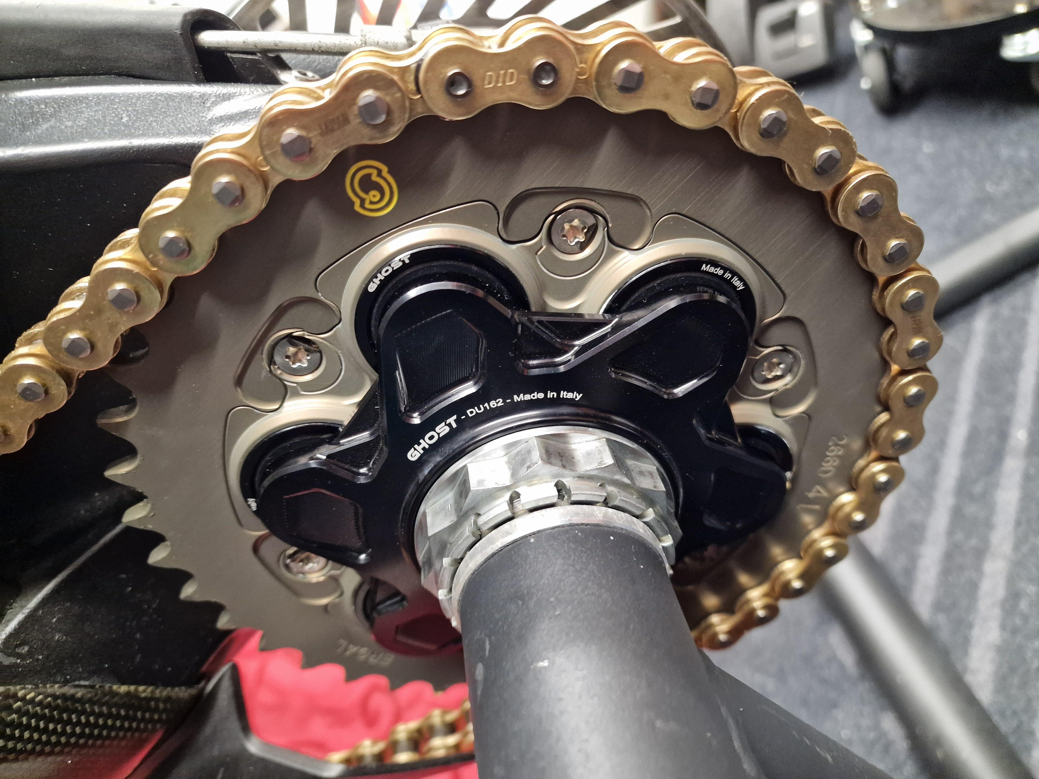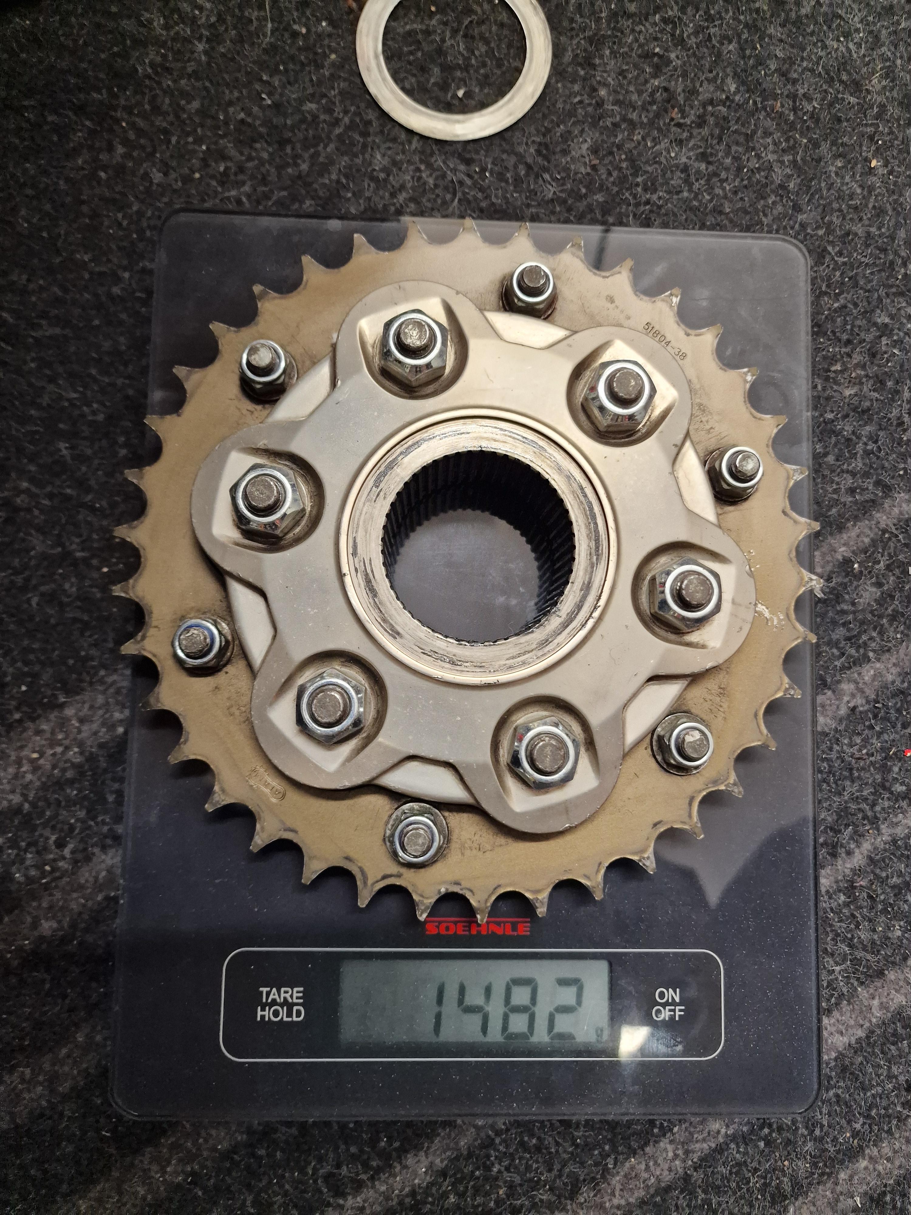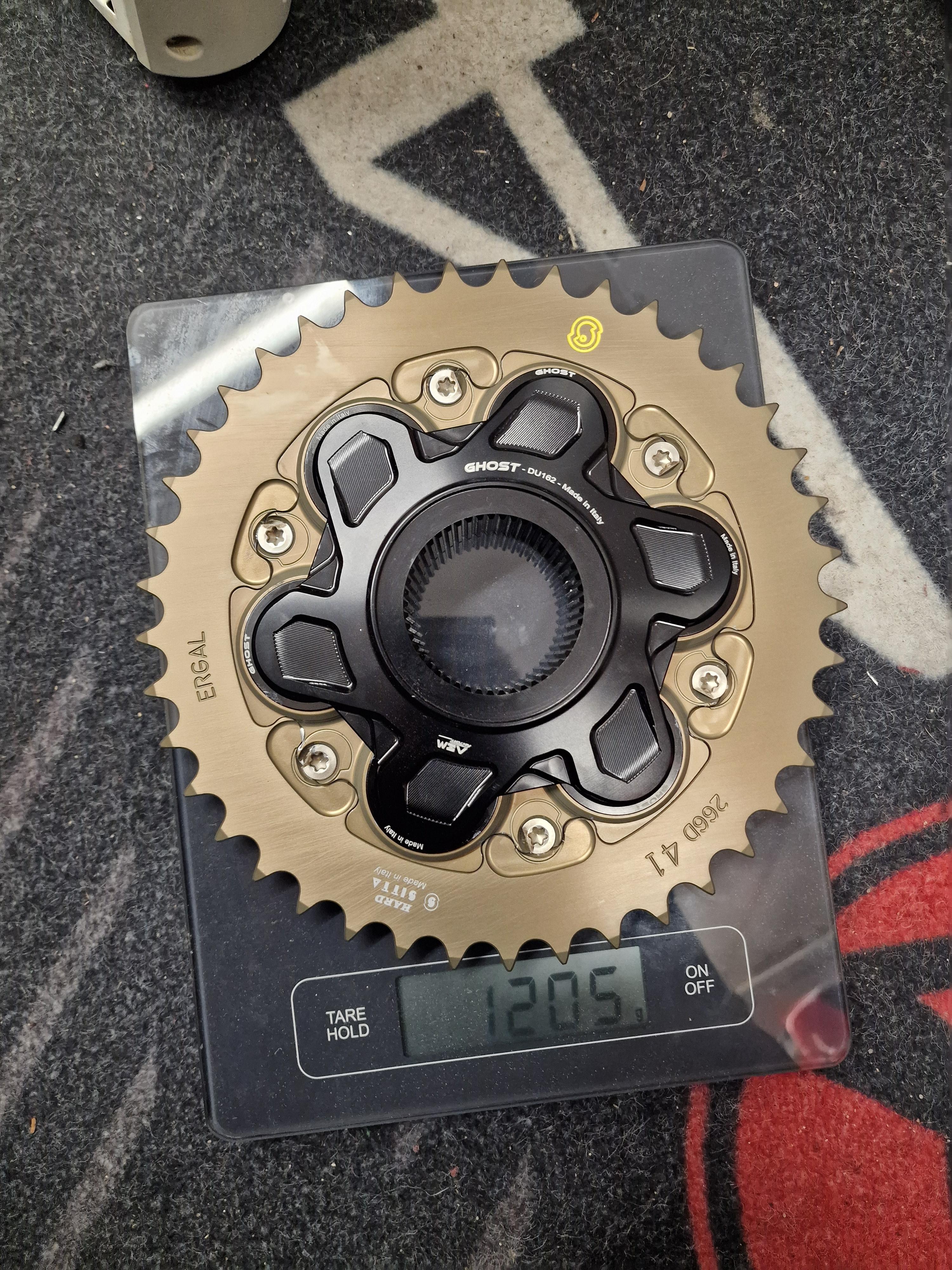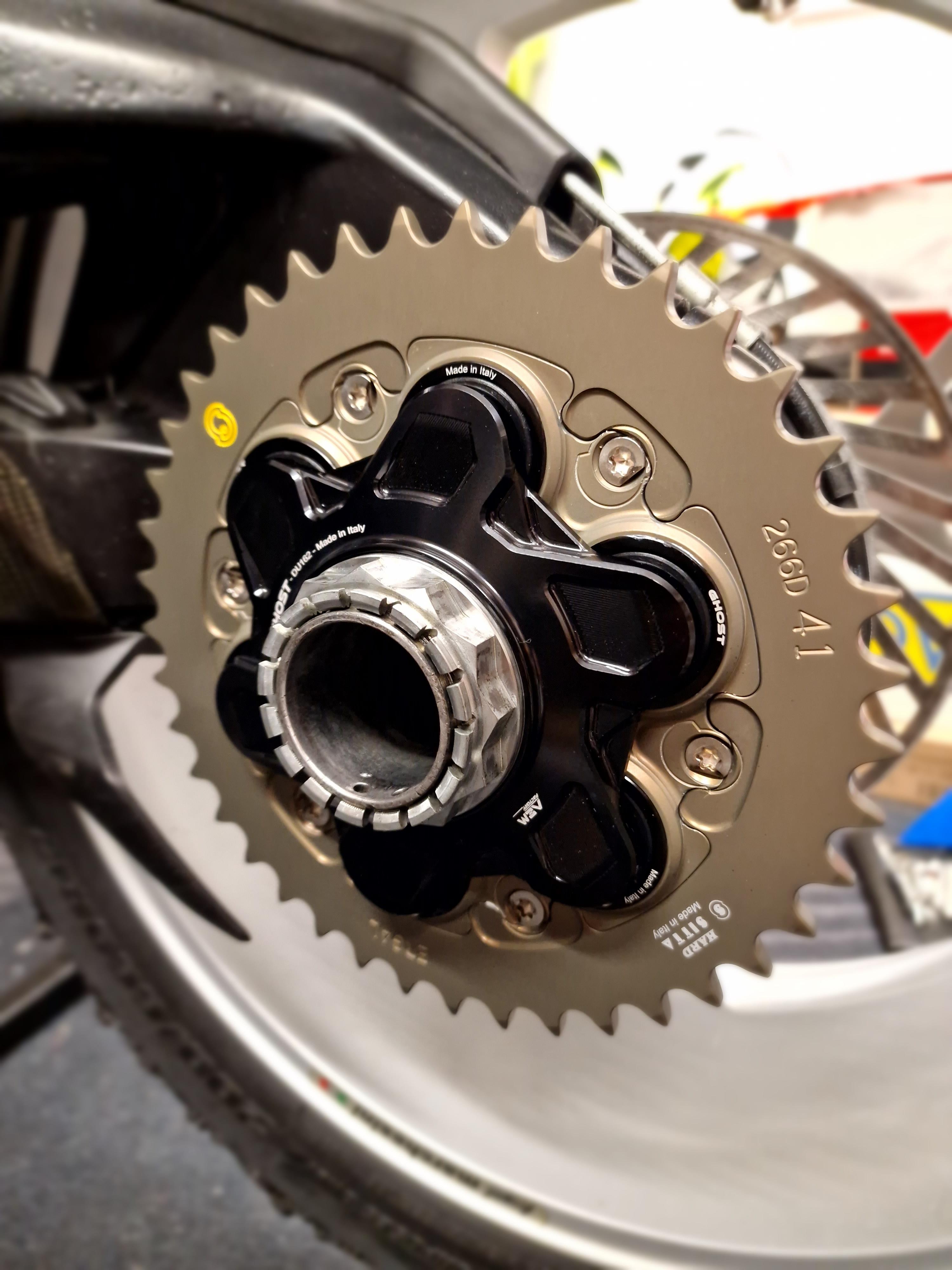 Felix87 Geschrieben 12. Mai 2025 Autor Geschrieben 12. Mai 2025 Nach dem Event ist vor dem Event - beim Reinigen der Kette ist mir aufgefallen, dass sich die Glieder ungleichmäßig bewegen ließen. Einige waren regelrecht fest und mit der Hand kaum zu bewegen. Da ich nichts über die Laufleistung der Ketten wusste, war ein weiterfahren damit ausgeschlossen. Über das Forum bin ich praktischerweise zu einem sehr guten Kurs an ein komplettes Sitta Kit + weitere Ritzel/Kettenräder gekommen - passend dazu ist der AEM Ghost Kettenradträger ohne extra Verschraubung der Ruckdämpfer in den Online-Warenkorb gewandert. Eine freundliche Mail an AEM und es gab ein paar % Rabatt. Die Kombination Sitta + AEM Flansch war dann auch fast 300g leichter als das vorher verbaute Schnellwechselkit von AFAM + original Kettenradträger - das freut doch das Schrauberherz🥳 Die vergammelte Ritzelschraube wurde in dem Zuge gleich gegen eine gebohrte zum Sichern getauscht. Die Kette lässt sich mit einem einfach Kettenwerkzeug, in dem Fall von Kellermann, leicht selbst trennen und die neue Verpressen. Für das Schmieren der Kette nehme ich seit 20 Jahren ausschließlich Profi Dry Lube - fahre bisher nicht (gewollt) im Nassen - Laufleistung und Sauberkeit waren an diversen Motorrädern damit immer top. 3 ++