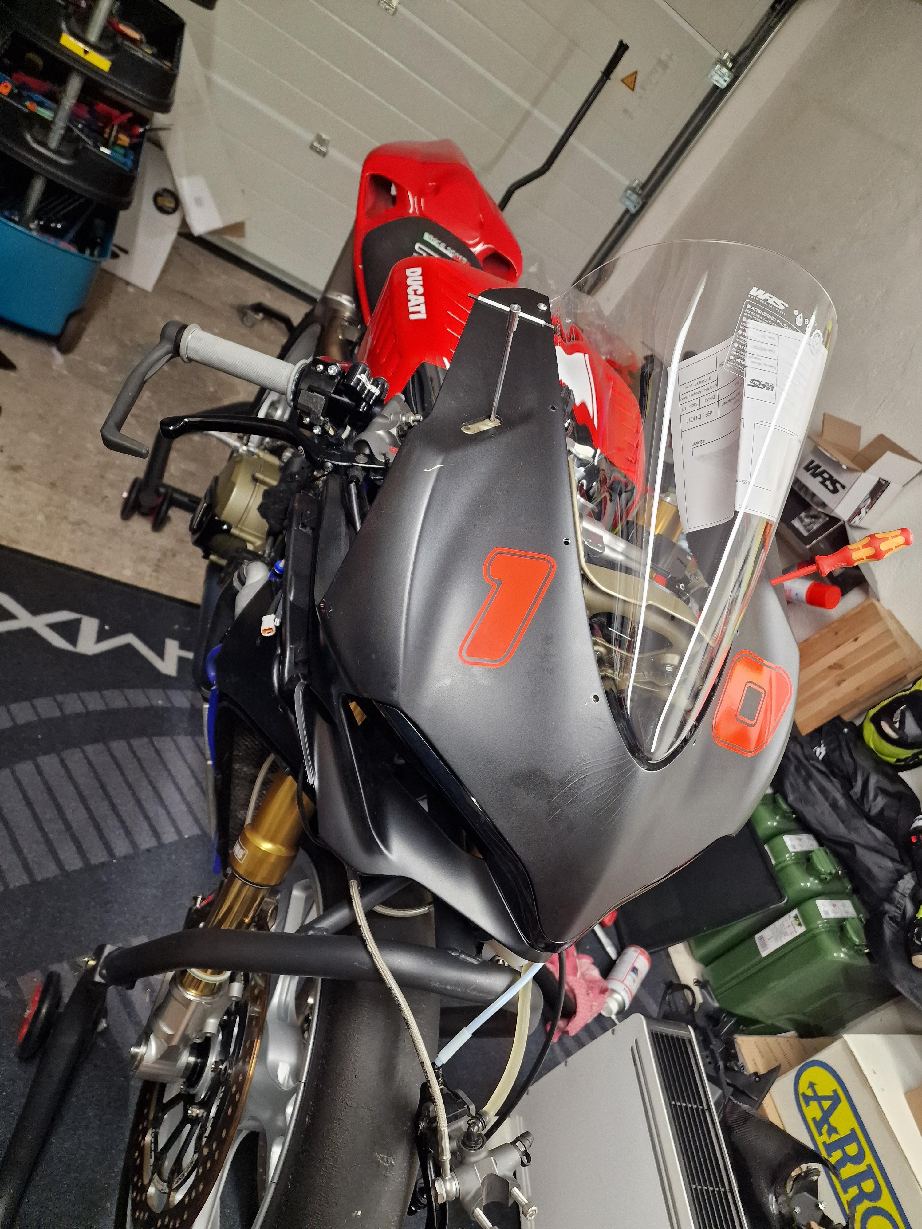 Felix87 Geschrieben 16. Dezember 2024 Autor Geschrieben 16. Dezember 2024 (bearbeitet) Direkt mit der Verkleidung wurde bei WRS in Italien eine höhere Verkleidungsscheibe (+ 50mm) bestellt. Diese ist für die 1299 und deshalb mussten die Befestigungslöcher für die 1199 Verkleidung etwas angepasst werden, aber meiner Meinung nach ist der zusätzliche Schutz im Fahrtwind jeden € wert. Zudem war die verbaute MRA-Scheibe schwarz getönt - irgendwie unpraktisch auf der Rennstrecke 🤦♂️ Die fährt mittlerweile bei einem unbekannten neuen Besitzer am Bike durch die Lande. Kleiner Exkurs zu WRS: Coole Truppe, bereits mehrfach vor Ort in Misano Adriatico unweit der Rennstrecke oder eben online dort eingekauft. Anbei (ältere) Bilder aus den Räumlichkeiten einer "privaten" Führung vor Ort - die Truppe dort ist stark mit dem Rennsport verwachsen, das sieht und merkt man auch: Bearbeitet 16. Dezember 2024 von Felix87 4 ++