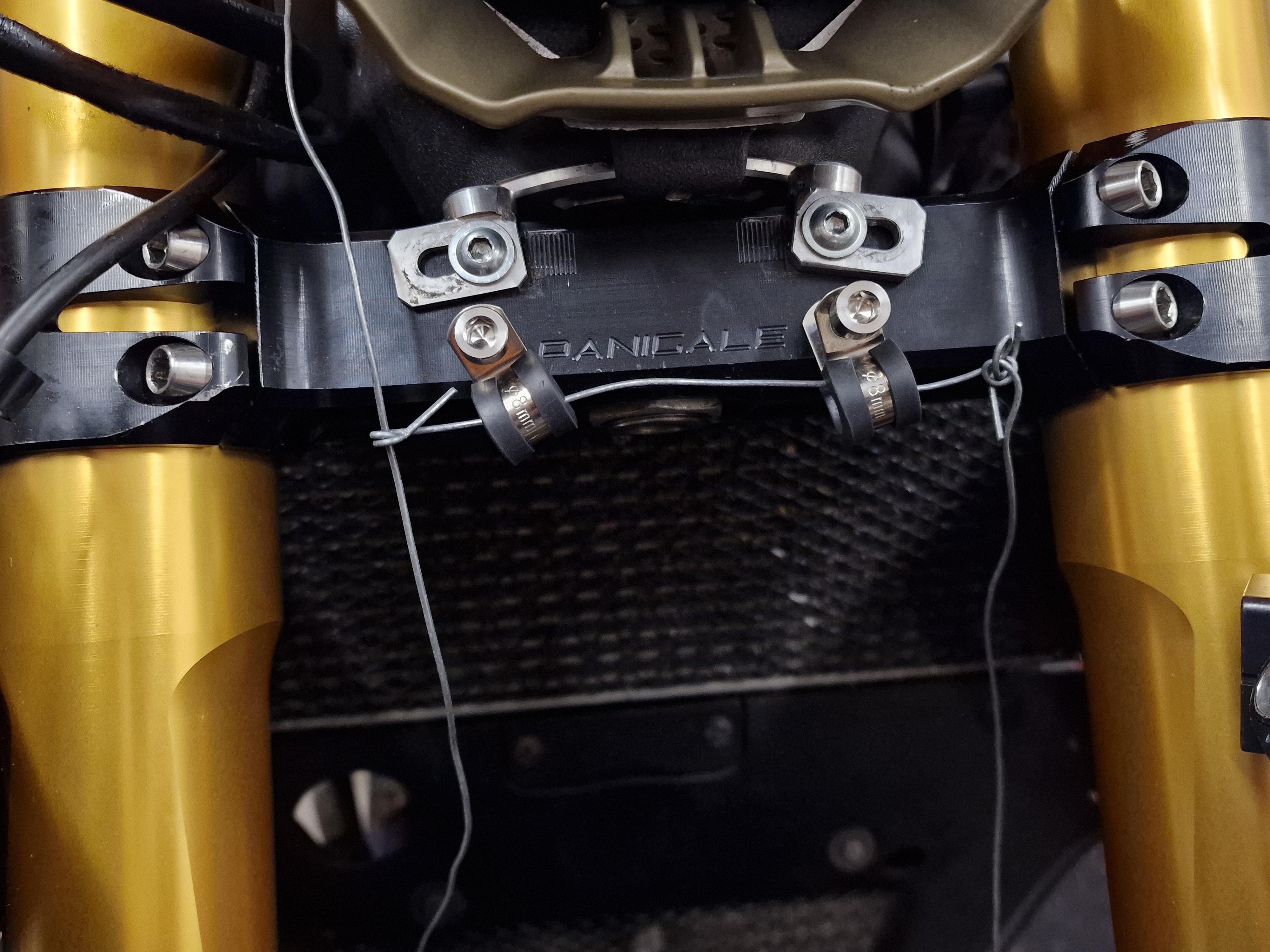 Felix87 Geschrieben 16. Dezember 2024 Autor Geschrieben 16. Dezember 2024 (bearbeitet) Ausgangsbasis ist eine Standard 1299, die den Großteil Ihrer bis dato 9.500 km im öffentlichen Straßenverkehr verbracht hatte. Die Maschine war relativ original und steckte in einer China Verkleidung. Highlight war das verbaute Öhlins-Cartridge in der originalen Marzocchi-Gabel und ein Zusatzkühler für Öl- und Wasser der den originale Wärmetauscher ersetzt. Ein Umfaller im Kies hatte diverse Spuren an Armaturen und Schwinge hinterlassen, jedoch nichts wildes. Nach Kauf und erster Durchsicht stellten sich leider einige Mängel heraus: - Sicherheitsrelevante Schrauben wie die Befestigung des Federbeins an der Umlenkwippe waren lose - Die IMU baumelte, lose an Kabelbindern befestigt, hinter dem Tacho - Der Lenkungsdämpfer war so montiert, dass die Kolbenstange auf einer Seite keinen Resthub hatte und damit der Lenkanschlag der Lenkungsdämpfer selbst war - Geweih mit Heißkleberpistole zusammengehalten - Licht-Dummy lose in der Verkleidung, Unterverkleidung Ram Air fehlt - Korrosion an vielen Bauteilen (wurde wahrscheinlich öfters bei Streusalz gefahren) Sinnbildlich für den Zustand: Geflickte Bauteile und Rost Bearbeitet 16. Dezember 2024 von Felix87 1 ++