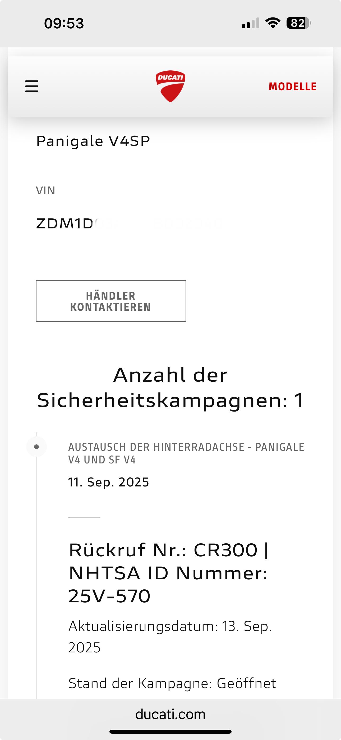EG1 Geschrieben 4. Oktober 2025 Geschrieben 4. Oktober 2025 Es sind alle Panigale V4 und Streetfighter V4 betroffen- von 2018 bis 2024. In Deutschland rund 7000 Fahrzeuge. Meine ist in zwei Wochen dran.... ++