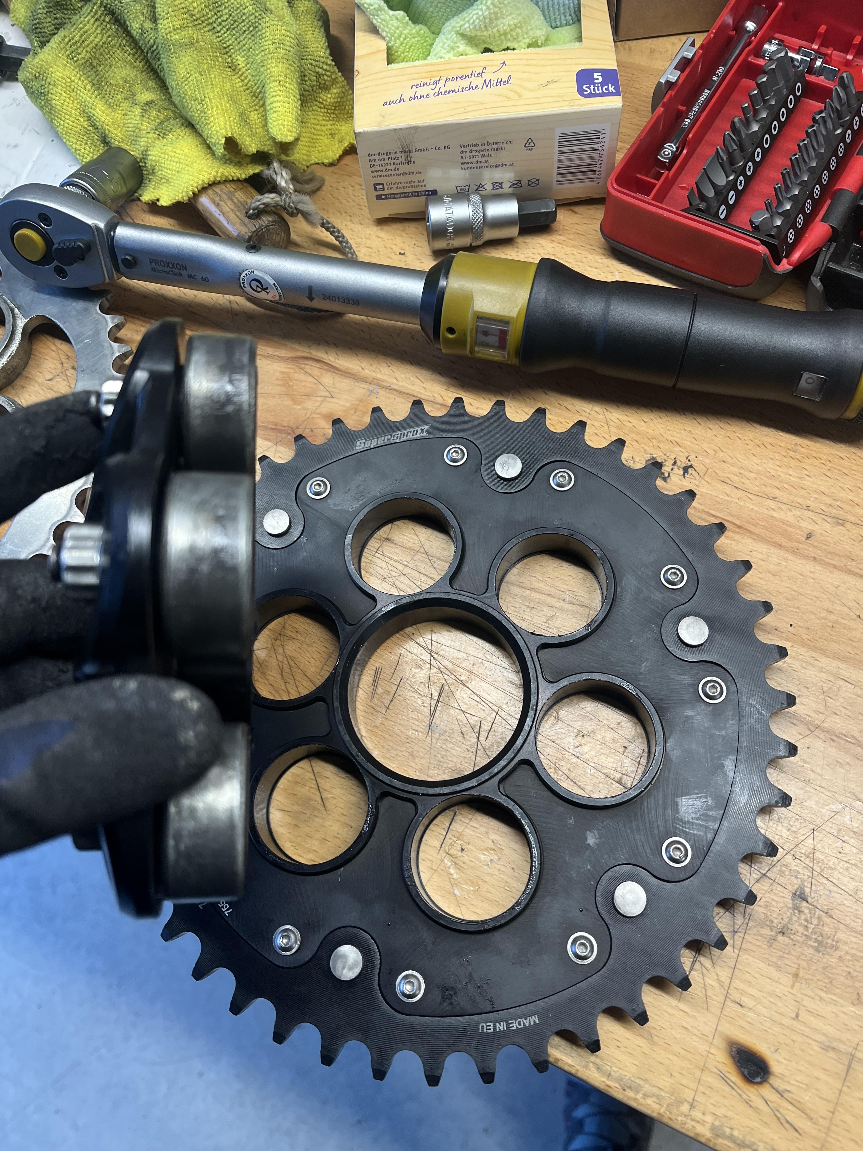 Kauther Geschrieben 29. November Geschrieben 29. November (bearbeitet) Hallo zusammen, ich brauche mal Hilfe. Ich wollte heute meiner SFV2 ein neues hinteres Kettenrad spendieren, das Stealth Supersprox. Ich dem Zug wollte ich auch den originalen Kettenradträger gegen einen von Ducabike tauschen. Leider lassen sich Kettenrad und Kettenradträger nicht miteinander verbinden, ich kann den Radträger, nach dem Festziehen der sechs 12-Kant Muttern, samt Rückdämpfern einfach vom Kettenblatt ziehen, also wirklich gar kein Halt. Rückdämpfer kaputt (16.000km) oder braucht es da andere? Kettenrad hat somit logischerweise auch sehr viel Spiel auf dem Träger, viel mehr als originales Blatt und Flansch. Die Produkte habe ich mal verlinkt. https://www.italobike-performance.de/Ducabike-Kettenradtraeger-PC6F08-fuer-viele-Ducati::2803.html?srsltid=AfmBOoo7q6b4uFdrHDMVnztS22EhR3miT6qG5tyjYmlopOn-81YNIag9 Kettenradträger https://www.kettenmax.de/passend-fuer-ducati-kettenrad-stealth-39-41-42-43-45-zaehne-520-gold-rot-schwarz-silber-rst-755-52-54016.html?c=21181 Supersprox Blatt Die Rückdämpfer sind die originalen. Vllt. weiß ja jemand Rat 🙂 EDIT: Original Teile wieder montiert, keine Probleme. Hab mal zwei Bilder beigefügt. EDIT2: Hab mir das nochmals in Ruhe angeschaut und wenn ich nicht völlig neben mir stehe ist das alles in Ordnung. Träger und Blatt lassen sich ja gar nicht verschrauben sondern nur Träger und Rückdämpfer. Beim Supersprox Blatt sind die Aufnahmen für die Rückdämpfer einen Müh größer und damit eben „fällt“ das Blatt schneller ab als das Originale. Gehalten wird ja alles durch die Dicke Zentralmutter. Bearbeitet 29. November von Kauther ++